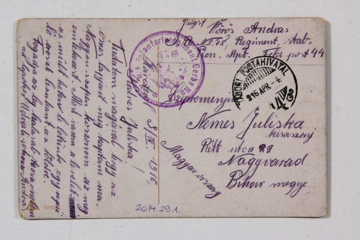 Egy évszázaddal ezelőtt a fronton szolgáló katonák és családtagjaik számára a kapcsolattartás kizárólagos eszközei a tábori postai levelezőlapok, illetve a képeslapok voltak. A fiút, kedvest, édesapát hazaváró családtagok pár soros üzenetei a lövészárkok poklában szenvedő, hazavágyódó katonáknak mindennél többet jelentettek. A frontról haza küldött képeslapokat cenzúrázták, ezért lényegi információkat nem tartalmazhattak. Így legtöbbször a katonák azt tudatták szeretteikkel, hogy jól vannak, egészségesek, valamint azt, hogy mit küldjenek számukra csomagban, mi az, amire szükségük lenne.